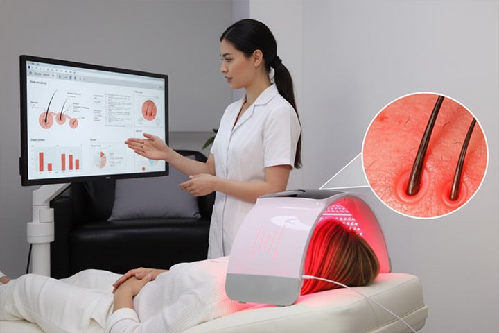 Offer scalp-focused LED protocols that are well-tolerated and pair with dermatologist-prescribed topicals/orals for pattern hair loss support.